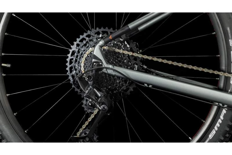 Finalmente, incorpora una transmisión integrada mayoritariamente en Sram SX Eagle: el grupo de entrada a las 12 velocidades. Destaca por su fiabilidad y robustez y monta un amplio rango de desarrollos (plato de 32 dientes y un cassette 11-50) con los que podrás coronar esas rampas que antes te parecían imposibles sin perder capacidad rodadora.