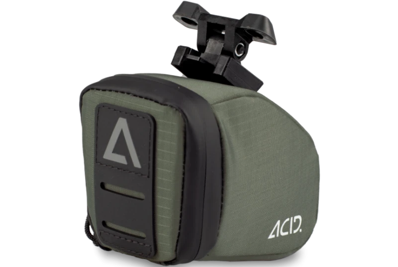 Lleva lo necesario. Esa es la premisa bajo la que se creó esta bolsa de sillín Cube Acid Click; hay que buscar la autosuficiencia sin renunciar a la comodidad. Con su construcción en nylon de alta tenacidad, todo el material que incluyas en el portaherramientas irá protegido y seco. Su geometría favorece que el material vaya compacto y no vaya chocando entre sí generando molestos ruidos.