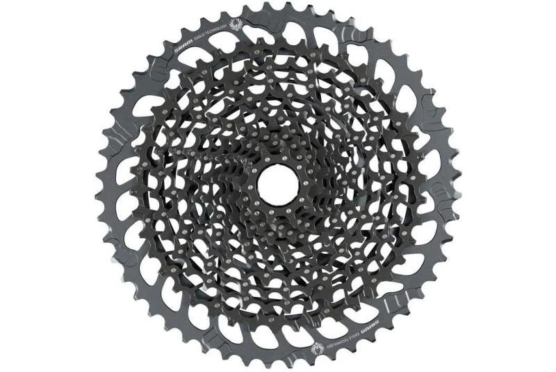 El nuevo Cassette 12V Sram Eagle GX XG-1275 12 velocidades es para aquellos que priorizan la practicidad por encima de cualquier otra cosa. Con un rango expandido del 520%, permite a diferencia del antiguo desarrollo 10/50, mayor cadencia en las subidas más complicadas y poder pasarlas sin generar tanto estrés a nuestras piernas o poner, píe a tierra.