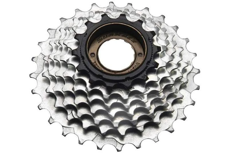 Piñón roscado Sunrace 14/28D para 7 velocidades. Un buen estado de este componente facilita el cambio al mejorar el guiado de la cadena, evitando saltos y proporcionando inmediatez.