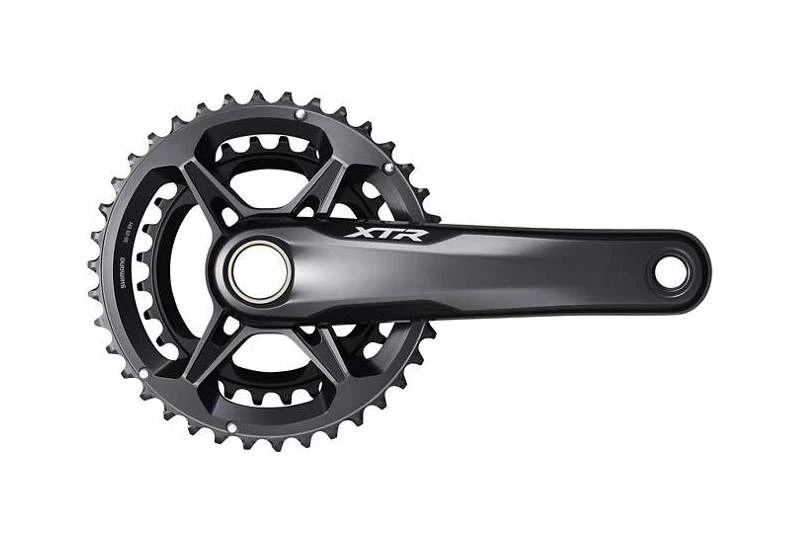 Las bielas SHIMANO XTR FC-M9100-2 tienen una construcción totalmente nueva y utilizan platos direct mount, un perfil de dientes de plato especial para mejorar la retención de la cadena, y un Factor Q de 162 mm. La FC-M9100-2 utiliza una línea de cadena de 48,8mm y se puede convertir entre 1x y 2x, con platos de 38-28D disponibles. Se dispone de brazos de biela de 165, 170 y 175mm.