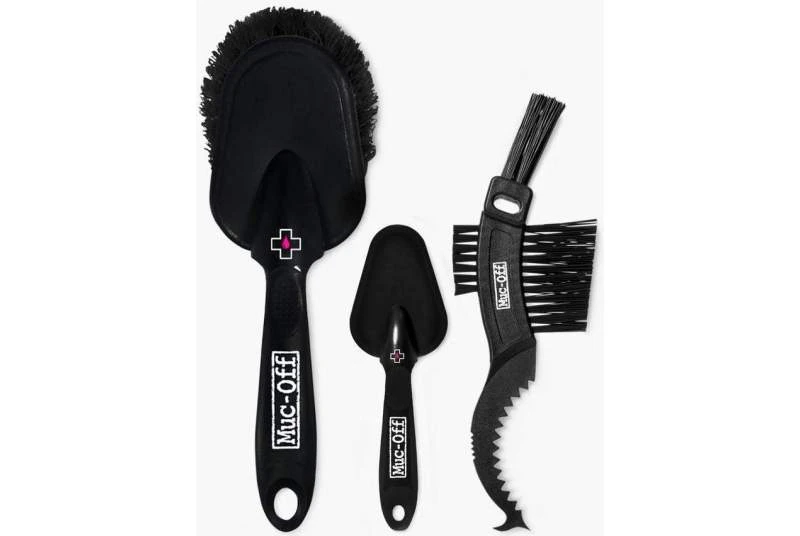 El kit de cepillos Muc-Off consta de tres de los elementos más útiles y efectivos del fabricante por excelencia en mantenimiento y limpieza de bicicletas y componentes: el cepillo Soft Washing, el cepillo para cassette y el cepillo para limpieza en profundidad.