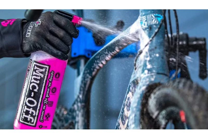 Limpiador de acción rápida Muc-Off, fabricado con su fórmula Nano Tech que consta de una serie de partículas de tamaño microscópico que disuelven las suciedad actuando a nivel molecular para poder arrastrarla con una sola pasada.