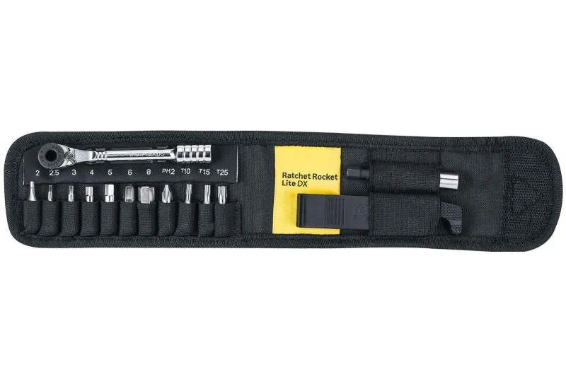 ¿Te imaginas llevar en el bolsillo una herramienta que perfectamente podría usar un mecánico profesional en su taller? Así es la herramienta Topeak Ratchet Rocket Lite DX, un tamaño mínimo capaz de aportar prestaciones de alto nivel. Y es que incluso la bicicleta mejor mantenida necesita un ajuste ocasional; con esta herramienta podrás solucionar averías tan dispares como un pequeño ajuste, la reparación de un pinchazo o asentar correctamente las pinzas de freno.