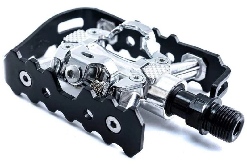 Para la práctica del MTB necesitamos versatilidad, rendimiento, resistencia y durabilidad; bastante duras son ya las condiciones a las que nos enfrentamos. Los pedales mixtos Cube RFR Twin nos brindan una gran plataforma de apoyo, una fluidez de giro alta y una facilidad enorme para calar y descalar los pies. Cuenta con una parte plana que incluye antideslizantes reemplazables y otra cara compatible con calas SPD.