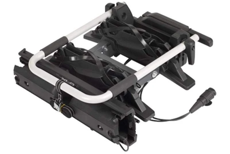 Según lo que necesites, cuenta con versión para transporte de dos o tres bicicletas, incluyendo eléctricas. Cuenta con un brazo de soporte para las ruedas. El ancho máximo de cubierta permitido son 80 mm, con una distancia máxima entre ejes de 1250 mm. Carga total permitida de 60 kg.