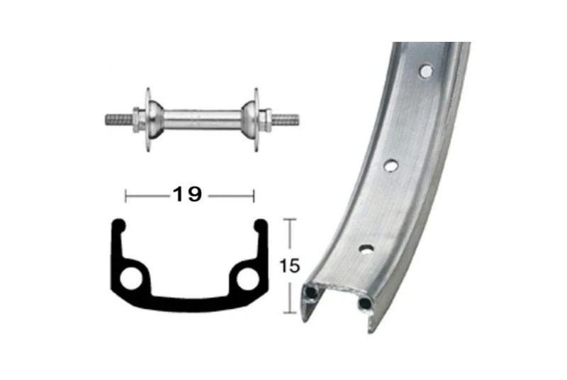 RUEDA DELANTERA ROLAND 12″1/2 x1.75 ALUMINIO 16 AGUJEROS VALVULA 8.5mm BUJE ACERO PLATA