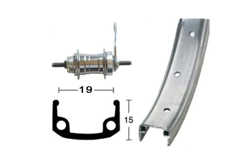 Descripción de llanta: 12 1/2 x 1.75. 16 agujeros, aluminio mate. ETRTO 203-23.