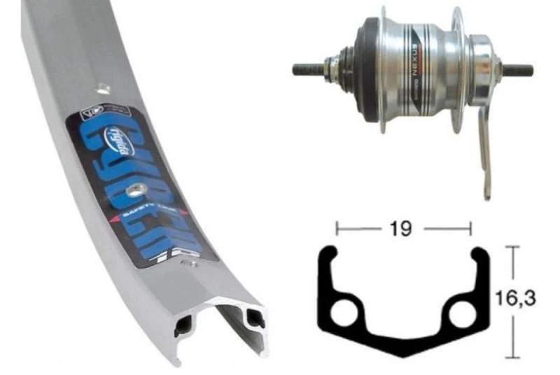 RUEDA TRASERA 28×1.75 WINORA CYBER 10 CONTRAPEDAL 36 AGUJEROS 128 mm PLATA ANODIZADO (622-19)