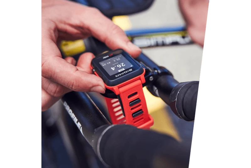 | NAVEGACIÓN KOMOOT ¡Saber siempre por donde ir! Junto con la app komoot, el iD.TRI te ayuda también en la navegación de tus rutas planeadas. Los avisos de giro se muestran directamente en el iD.TRI y la luz inteligente también te alerta de ellos. De esta manera, tu smartphone puede quedarse en el bolsillo mientras tu te focalizas en tu objetivo. | NAVEGACIÓN CON TRACKS ¡El iD.TRI te muestra siempre por dónde ir! Crea un track, cárgalo en el reloj y comienza la aventura. Carga tus rutas mediante el DATA CENTER o la aplicación SIGMA LINK en el iD.TRI. Además puedes marcarte en tu trayecto los PDIs que quieras y aparecerán como alertas en pantalla. |